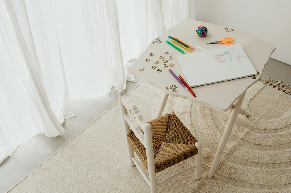 - Lese- og læringsområdet kan innredes med et lite bord, en stol og god belysning. Her kan barnet tegne, lese eller gjøre lekser.