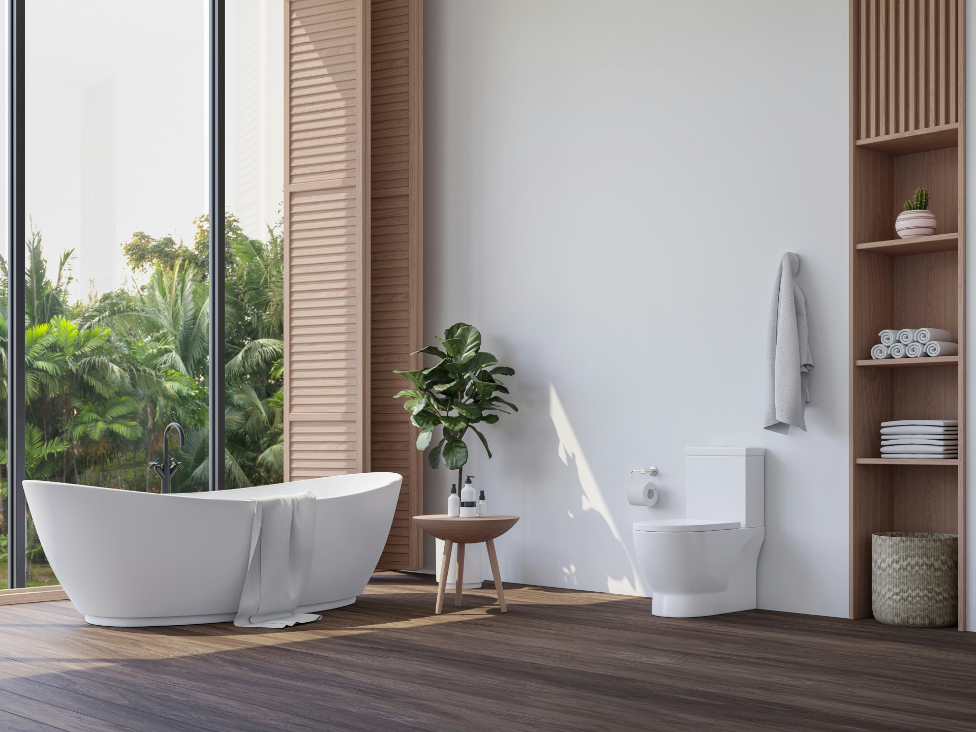 For å forsterke det naturinspirerte uttrykket kan du supplere med materialer som tre, bambus, stein og lin i interiøret. En benk i eik, en kurv til håndklær eller grønne planter kan gjøre stor forskjell for helhetsinntrykket. Planter som bregner, fredsliljer eller orkidéer trives godt i badets fuktige klima og tilfører liv og friskhet.